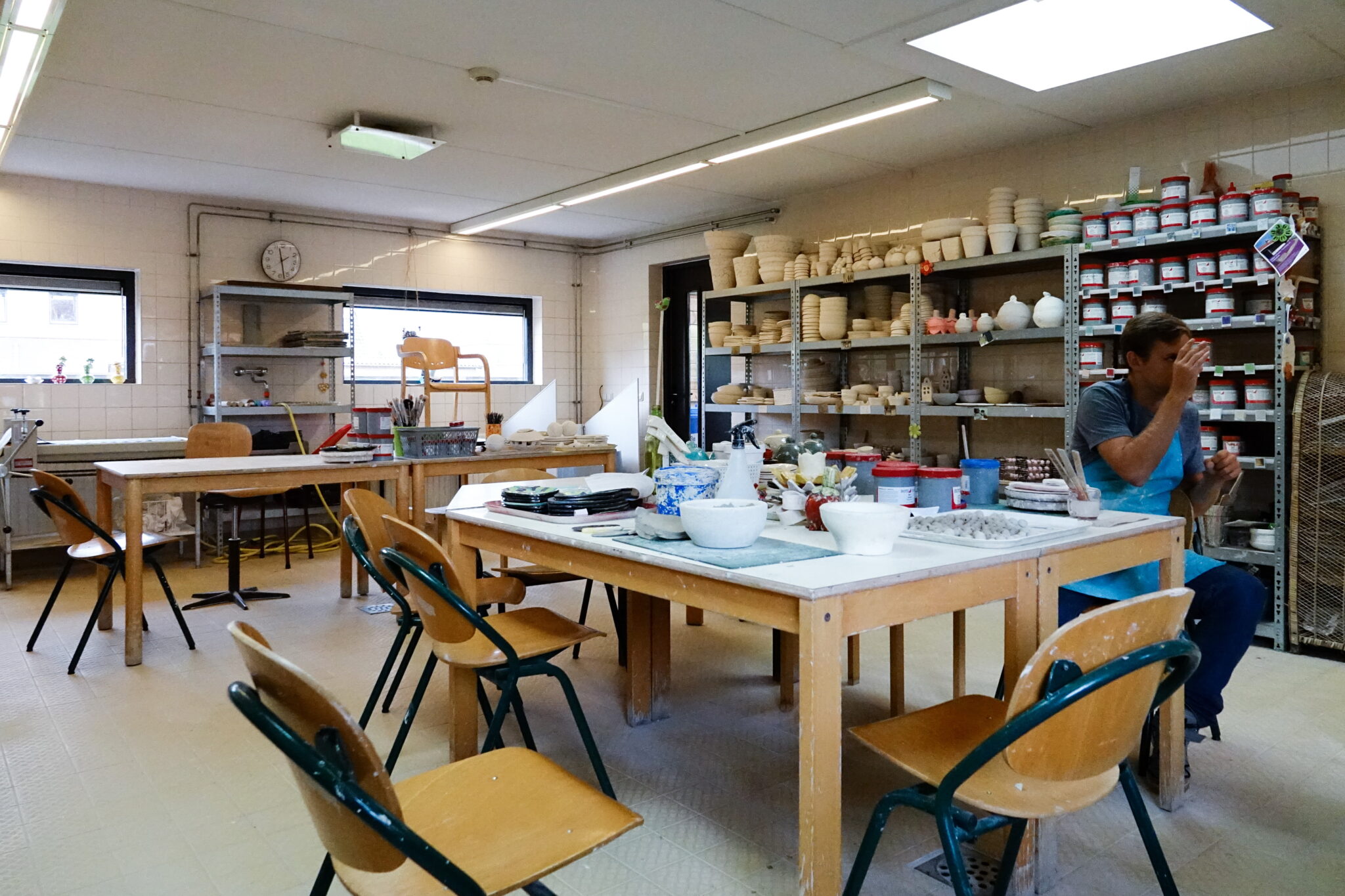 Op de keramiekafdeling maak je potten, schalen en allerlei figuren met behulp van klei en mallen.