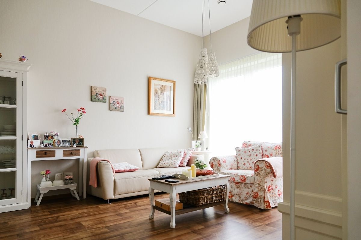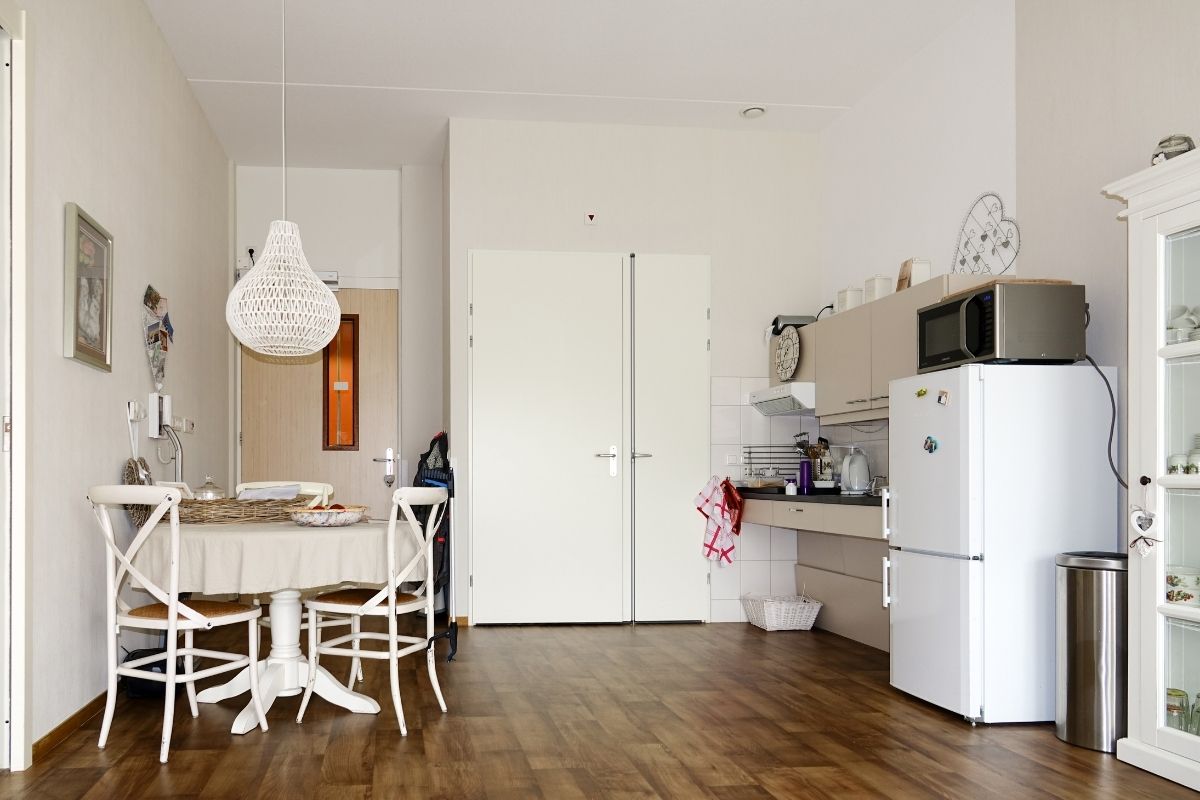 Jouw appartement is voorzien van een keuken en een ruime badkamer. Op de benedenverdieping is een algemene ruimte waar op gezette tijden koffie/thee en de warme maaltijd genuttigd kan worden. Zowel boven als beneden is er een terras.