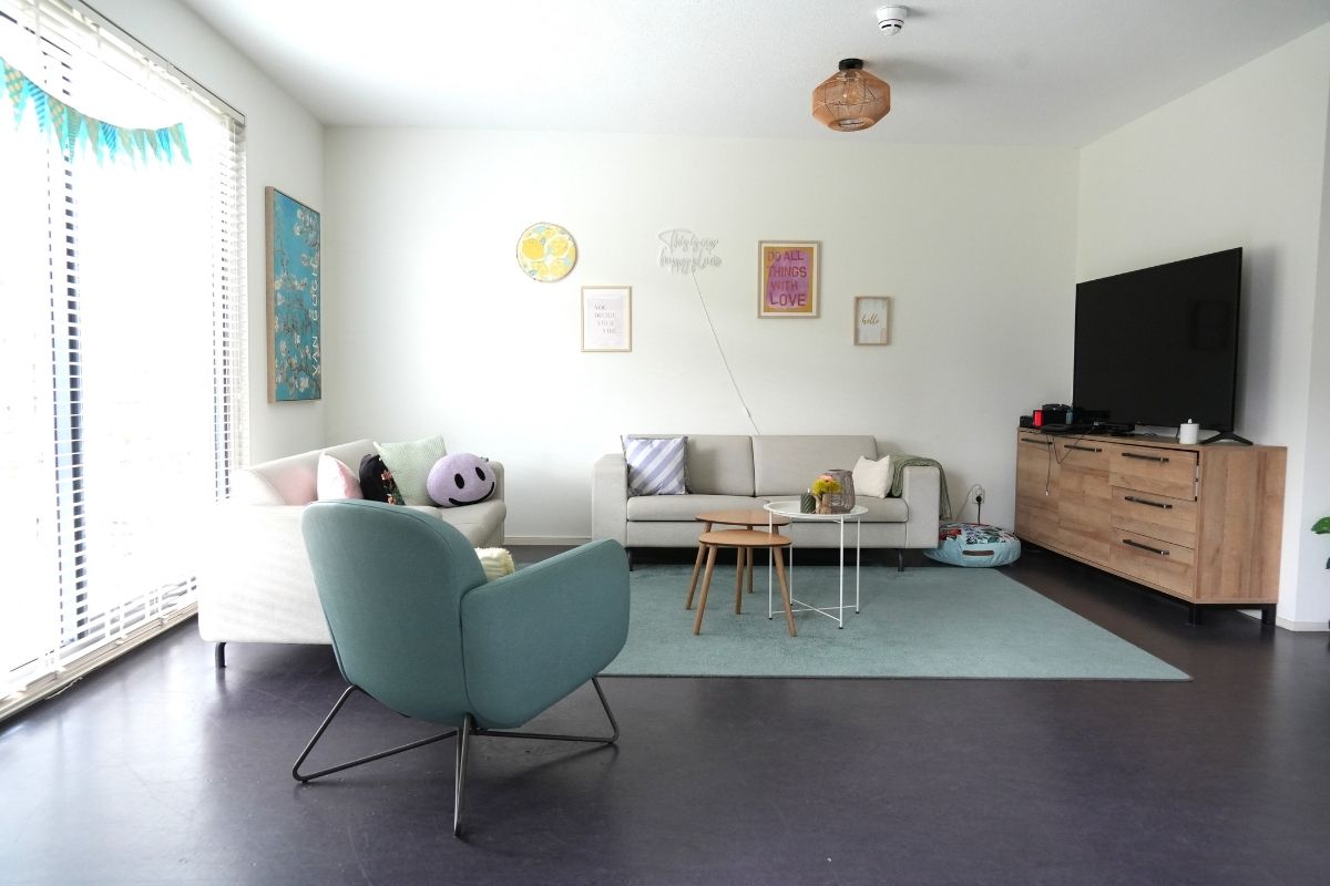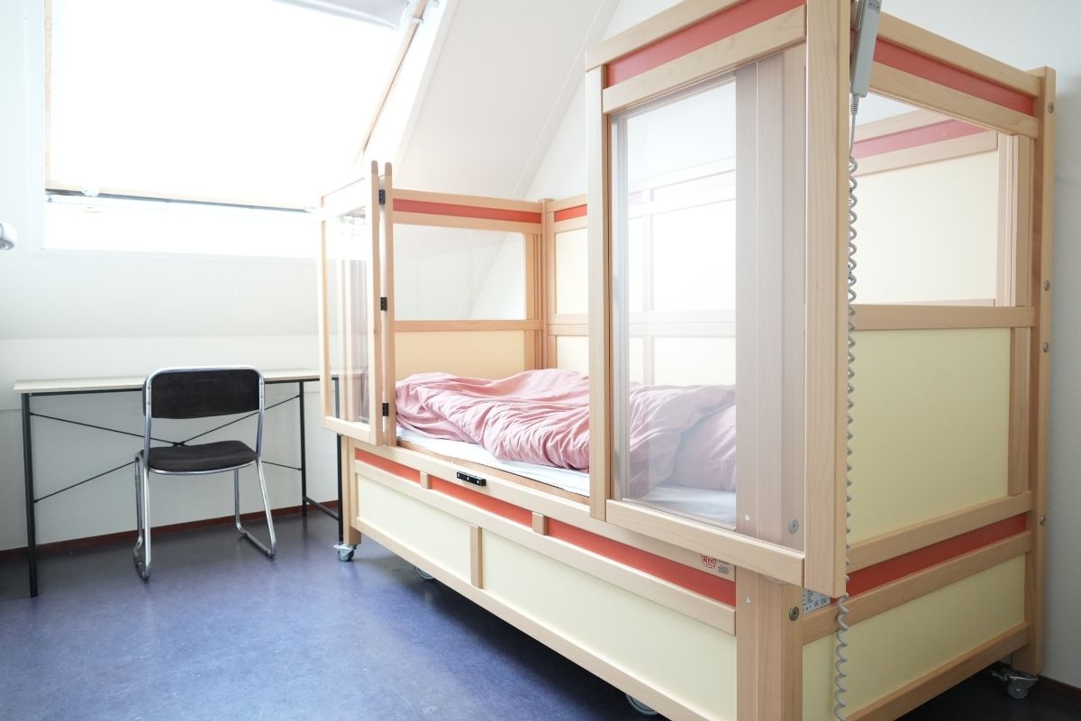 In totaal zijn er zestien slaapkamers en twee gezamenlijke woonkamers. Iedere logé heeft een eigen slaapkamer. In één van de woningen is een zolderkamer met een keukentje: een fijne plek om te oefenen met zelfstandig wonen.